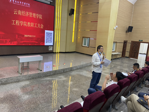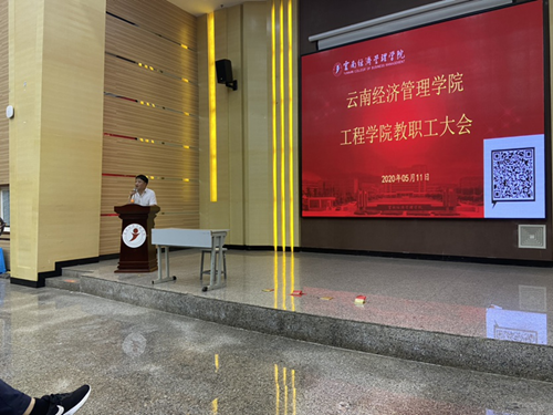 2020年5月11日下午,云南经济管理学院工程学院于校图书馆200人报告厅举行本学期教职工大会。本次大会在院长向凤红,副书记王为仕,副院长张涛、任宇杰的主持下顺利召开。