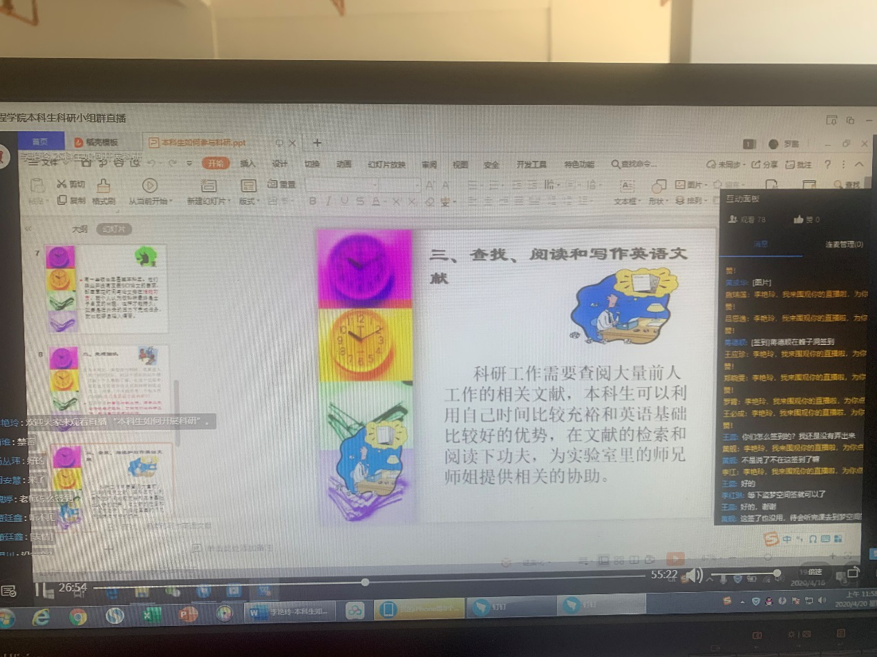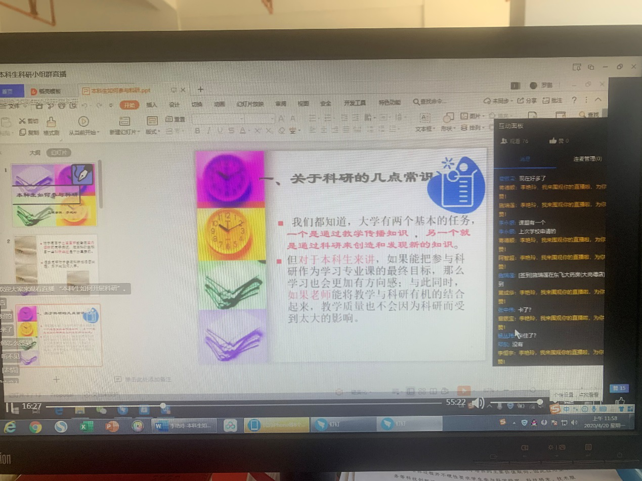 今年是特殊的一年,鉴于疫情发展,我们都还未开学。工程学院科研小组成立后的第一次培训活动于2020年4月16日晚上7点在钉钉直播开展。此次培训的主题为“本科生如何开展科研活动”。