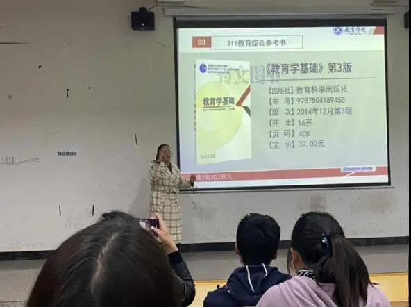 随后,由学院辅导员胡洋老师为同学们传授最新考研动态信息。胡老师强调,考研需要同学们打好专业基础,这是同学们取得成功的关键。除此之外,老师还讲了一些复试小技巧,例如,如何联络导师等等。最后,他还向同学们列举了一些在面试中可能会遇到的问题。会议还邀请了两位20级小教班的同学为大家分享她们考英语四级的经验,以便为接下来的英语四级考试做准备。