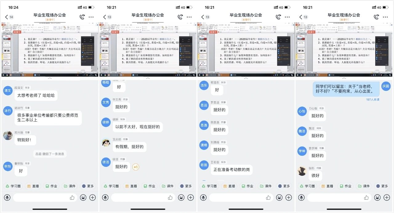 2020年3月26日,教育学院组织2020届学前教育专业毕业生进行了就业指导宣讲,学前教育专业代敏老师从全国学前教育行业发展与需求、云南省学前教育行业发展现状与需求、我校学前教育专业毕业生就业现状、幼教机构对人才的需求及我们该怎么做五个方面做了详细的讲解,分析了目前学前教育专业学生在就业过程中的机遇与挑战,最后从我校往届学前教育专业学生就业的情况和问题入手,探讨了在目前的就业形式下,学前教育专业学生应如何更好的进行就业。