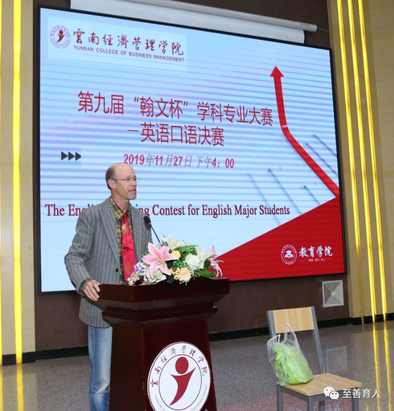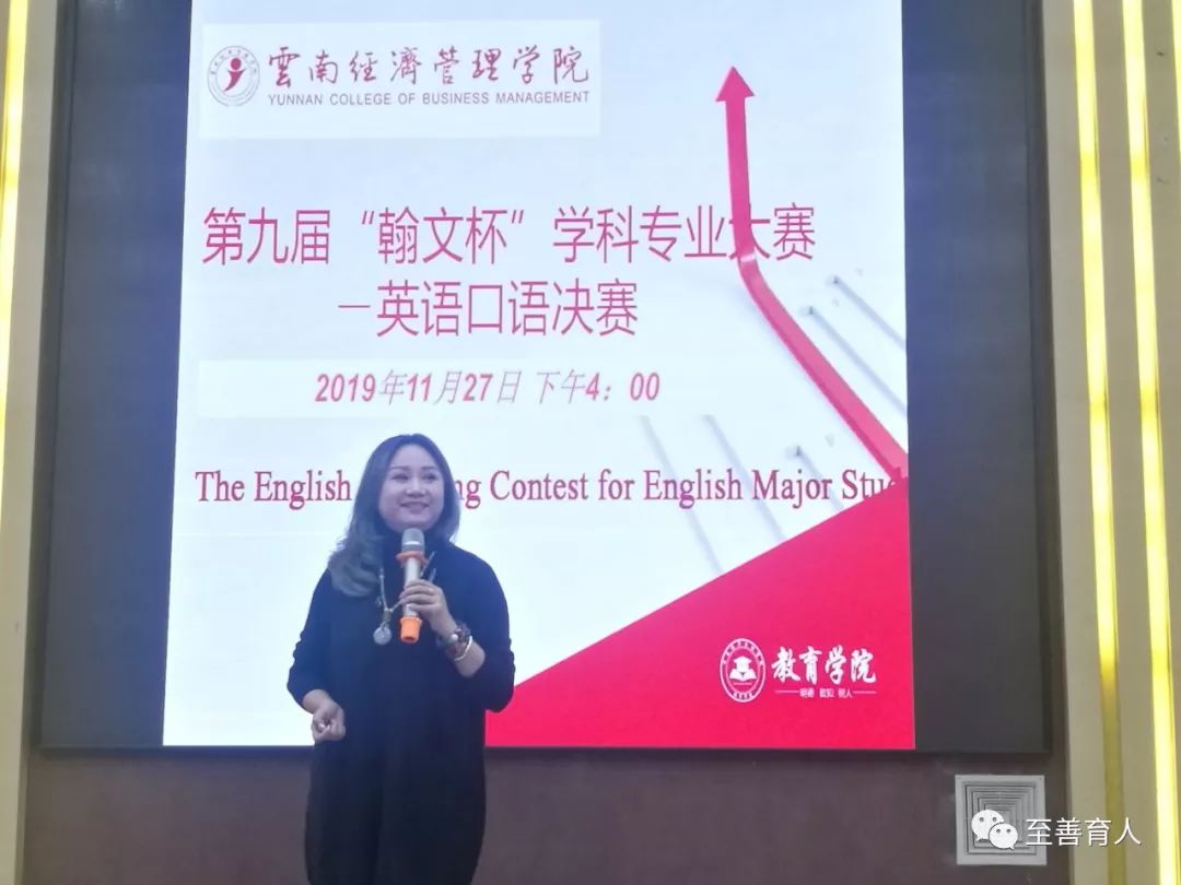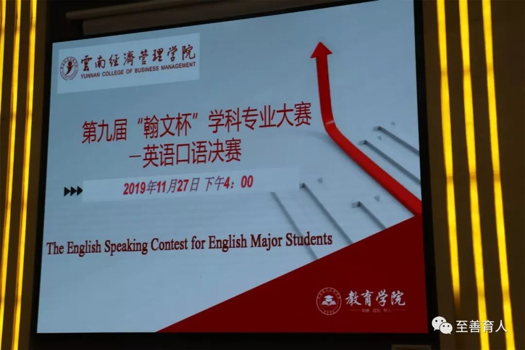 为了提高当代大学生的英语口语水平,检验我院学生的英语学习水平,增强全院的英语学习氛围,由云南经济管理学院主办、教育学院小学教育系外语教研室承办的“第九届‘翰文杯’学科专业大赛——英语口语决赛”于2019年11月27日下午4:00在安宁校区图书馆200人报告厅成功举行。
