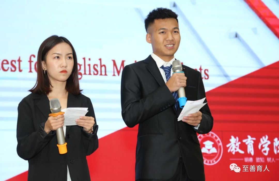 2018级应用英语班吴金芬(左)、杨拼强主持比赛