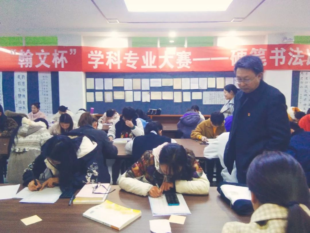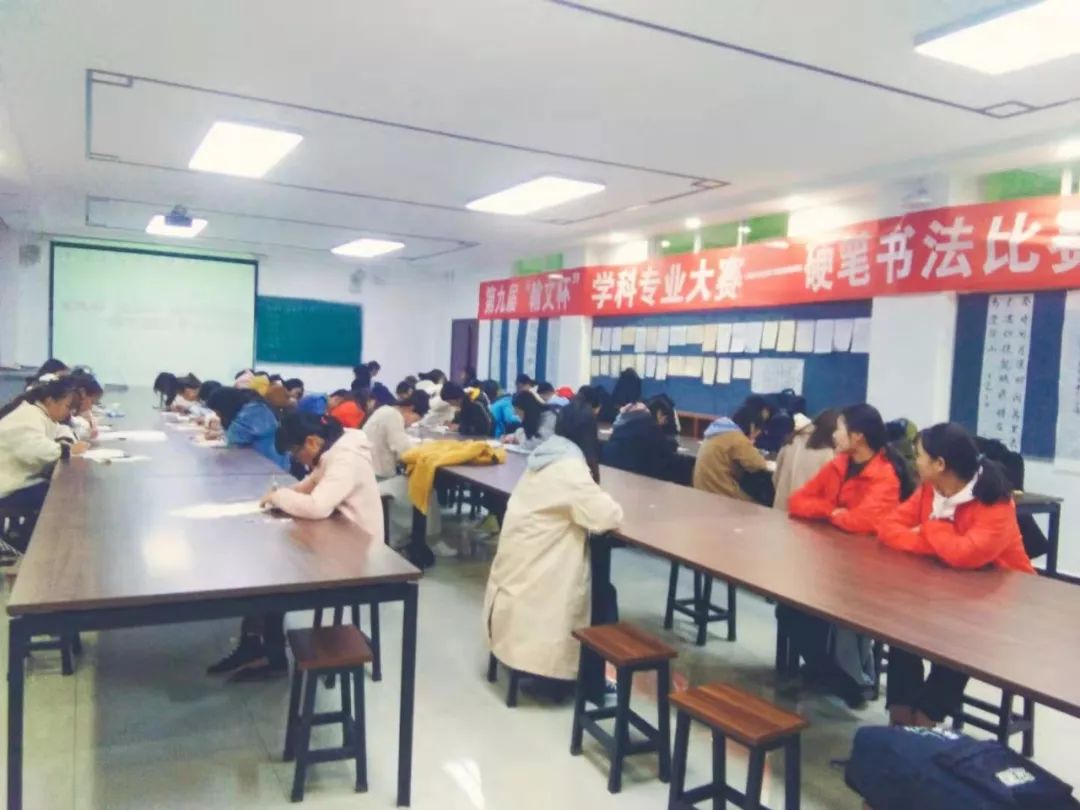 12月3日、4日晚上7点,参赛人员在三教书法实验室进行了2个小时的现场“对弈”;随后,经过评委会严格、反复的评审;最终从进入决赛的83件作品中评选出获奖作品32件。本次学科专业大赛是小学教育专业利用第二课堂提升学生专业技能的初步尝试。