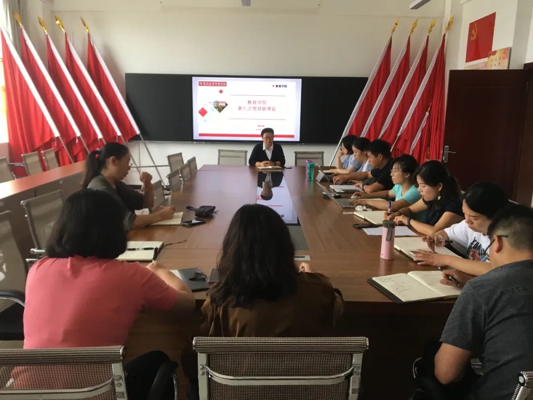 7月6日,教育学院2019—2020学年下学期第九次党政联席会在安宁校区三教406室召开。教育学院党总支书记、院长崔立华、副院长萧敏、党总支副书记杨淑雯出席会议,各相关部门负责人列席会议。