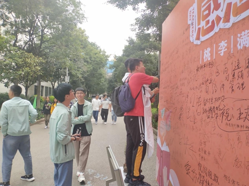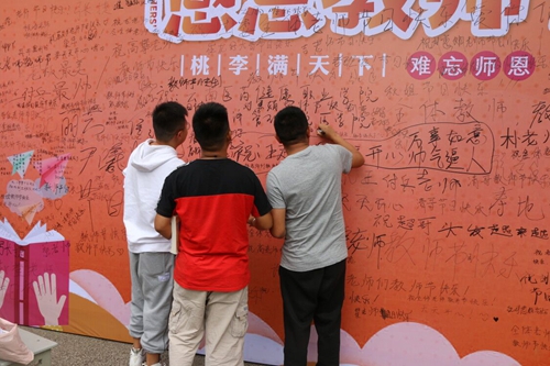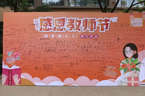 为弘扬中华民族尊师重教传统美德,激励教师热爱教育事业,积极进取,开拓创新,推动学校各项工作全面发展云南经济管理学院医学院于9月10日早上在一食堂门口进行了感恩教师节学生祝语墙同学们在上面写满了各式各样祝福教师们的祝福语言。