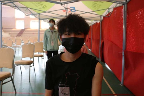 第一个接种疫苗的同学:“打疫苗就是为了自己的安全考虑,所以在接种过程中配合志愿者们,并对他们说一声你们辛苦了!”